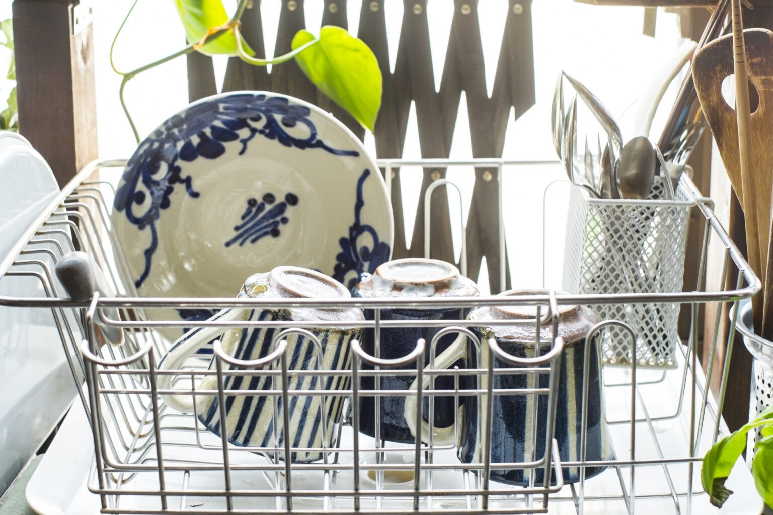 ステンレスやワイヤータイプの水切りカゴは、水切れがよく、全体が乾きやすいのが大きな魅力です。通気性が高いため、洗い終わった食器の水分が自然と落ちやすく、乾くまでの時間が短く感じられることもあります。